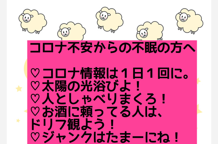 コロナ不安からの不眠気味の方へ